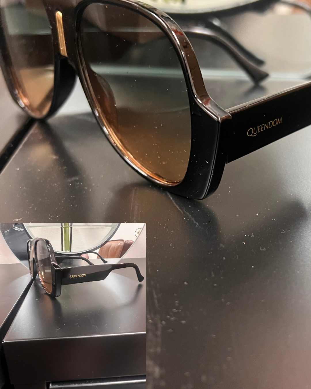 The wide temple arms are proudly stamped with the gold QUEENDOM logo — your signature of power, poise, and presence.